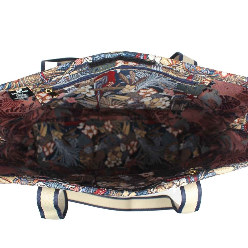 Inspired by Henney’s early design creations using the art of the tapestry and vegan leather. This artistic & beautiful piece of tote bag combines fine quality and unique fashion. These are just not bags but also a piece of art made with passion.